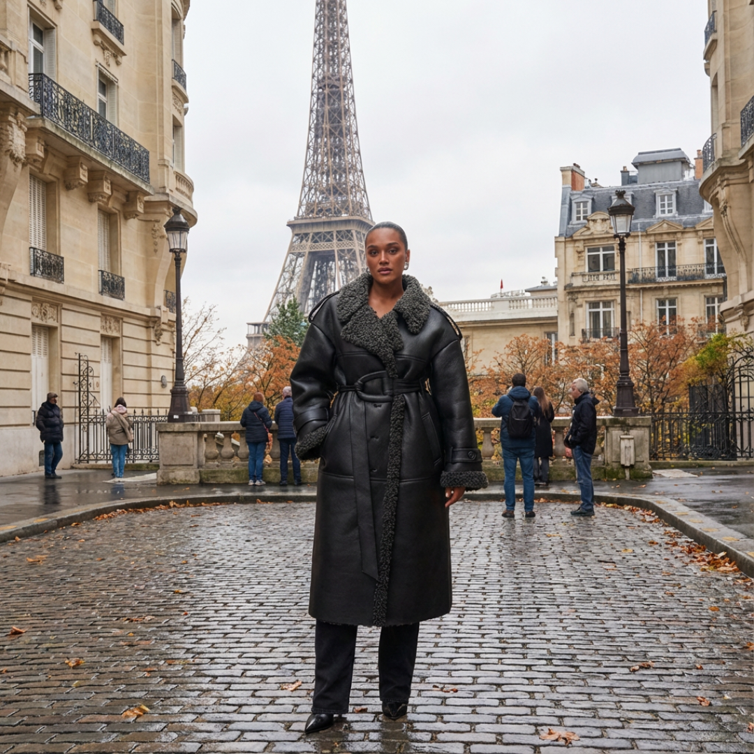 Egy női, shearling-hatású bélésű hosszú bőrkabát, amely az alpesi eleganciát és az időtálló téli luxust hozza el. A puha tapintású (vegán) bőr külső és a meleg, plüss bélés tartós komfortot ad, kifinomult megjelenéssel. Tökéletes hegyi pihenésekhez, de városi téli estéken is gyönyörűen mutat elegáns szettek fölé rétegezve.