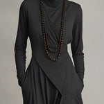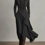 A gyönyörűen lebegő, hosszú ujjú sziluett mozgás közben is elegánsan követi az alakot. A Marilyn Maxi Ruha a kényelmet, a kifinomultságot és az időtálló eleganciát ötvözi. A puha, magas nyakrészt és az aszimmetrikus, leomló rétegeket úgy tervezték, hogy karcsúsító, nyújtott hatást keltsenek, miközben természetesen elegáns és könnyed viseletet biztosítanak. Tökéletes választás elegáns estékhez, különleges alkalmakra vagy kifinomult hétköznapi megjelenéshez – egy ruha, amely a visszafogott magabiztosságot és a nőies kecsességet testesíti meg.