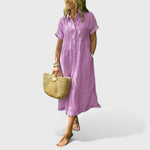 Az Angela ruha hosszabb hosszal és örök szabással rendelkezik, amely szépen kiemeli a derekat és simán omlik a test köré. Puha, lélegző anyagból készült, így ideális forró nyári napokra, romantikus estékre és ünnepi pillanatokra a városban.